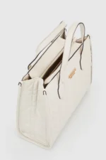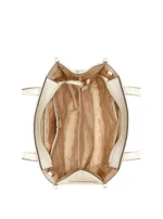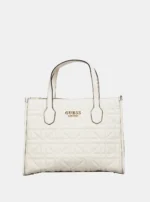 Carry your essentials in style with the White Silvana Tote Bag. Its quilted smooth PU base and smooth PU trim add a touch of elegance, while the shiny gold hardware adds a pop of glam. With dual top handles, a back zip pocket, and multiple compartments, this bag is both functional and fashionable. Perfect for any occasion.